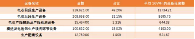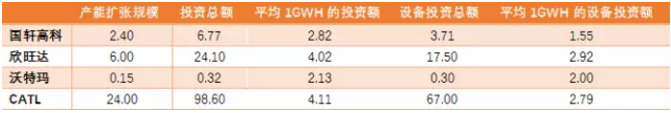 表12:主要電池廠商平均1GWH的設(shè)備投資額