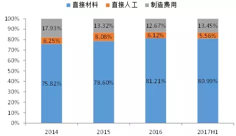 ?公司負極材料為石墨,平均采購價格逐年降低; 2017 年上半年,由于環(huán)保因素導(dǎo)致價格有所回升。