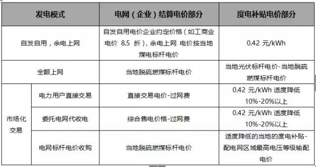表 1:分布式光伏項(xiàng)目不同發(fā)電模式的電價(jià)構(gòu)成