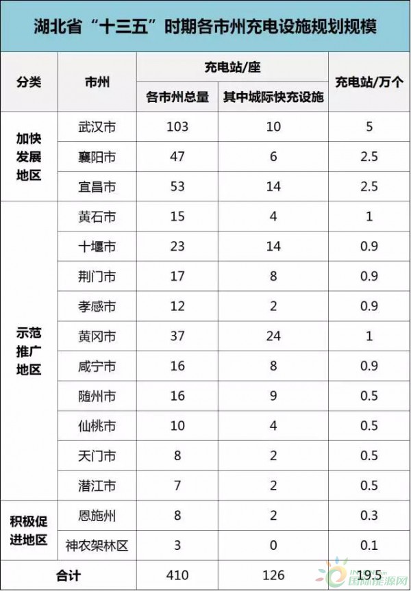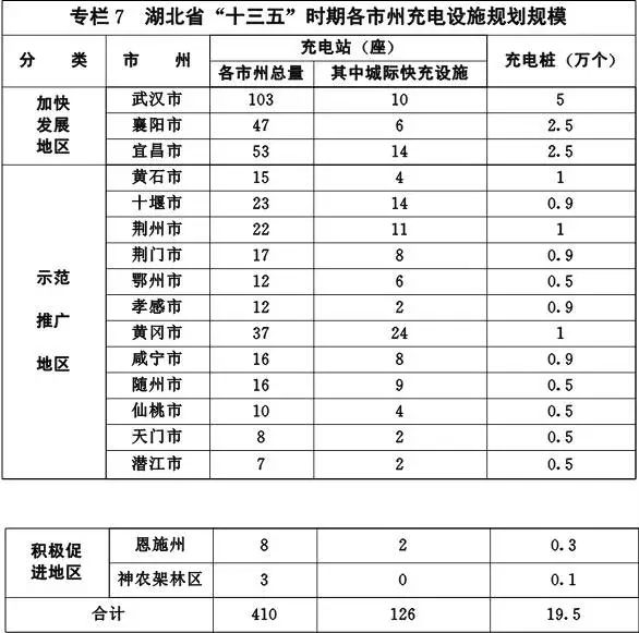 “十三五”時(shí)期,湖北省在充電設(shè)施建設(shè)方面,將各市州分為三個(gè)地區(qū),武漢、襄陽(yáng)、宜昌為加快發(fā)展地區(qū),黃石、十堰、荊門(mén)、孝感、黃岡、咸寧、隨州、仙桃、天門(mén)和潛江為示范推廣地區(qū),恩施、神農(nóng)架林區(qū)為積極促進(jìn)地區(qū)。