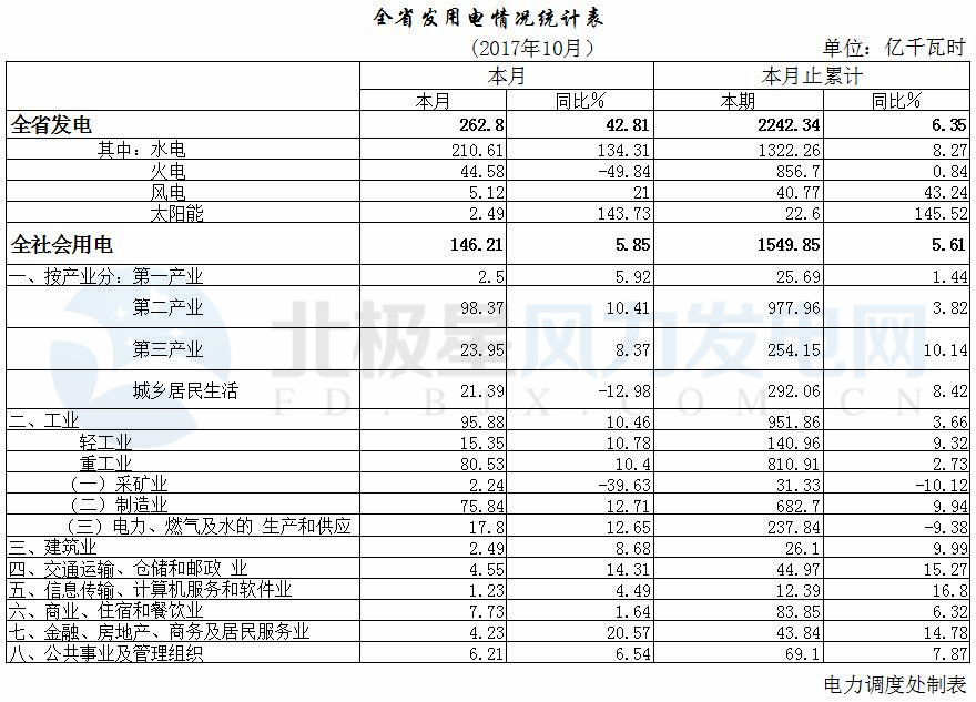 十月份全省電力運(yùn)行情況