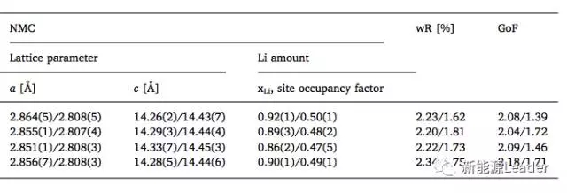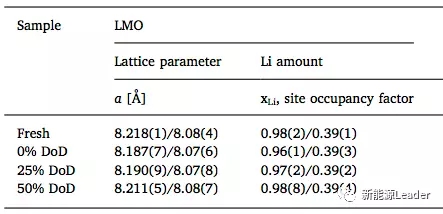 Po-Han Lee根據(jù)中子衍射結(jié)果得出的不同放電深度的電池總正極材料的晶格結(jié)構(gòu)變化和Li含量的變化,從下表中可以看到25%DOD(75%SoC)電池在存儲(chǔ)過(guò)程中活性Li和NMC的損失最為嚴(yán)重,并且LMO的損失也較為嚴(yán)重。而在0%DOD(100%SoC)電池在存儲(chǔ)后LMO材料的a值下降最為嚴(yán)重,這意味著在存儲(chǔ)的過(guò)程中LMO材料的損失也最為嚴(yán)重,而活性Li和NMC的損失僅次于25%DOD(75%SoC)的電池。