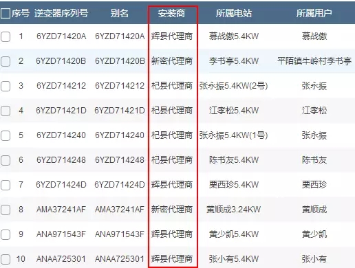 某一個(gè)終端電站是哪個(gè)安裝商,哪個(gè)業(yè)主?安裝在什么地方?電站發(fā)電量多少?目前是正常還是故障?所有信息在一個(gè)界面都可清晰看到。甚至電站是什么時(shí)候安裝的,用戶的手機(jī)號(hào)碼等也都可追溯查看。信息完整全面,客戶可隨時(shí)隨地監(jiān)控自己的用戶及電站信息。