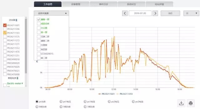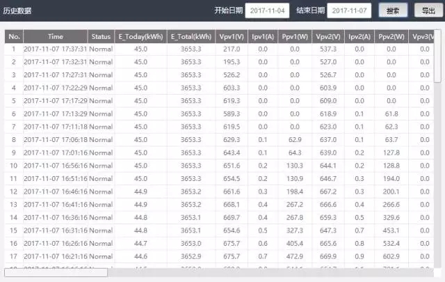 在OSS系統(tǒng)里,客戶可查看自己安裝的任意一個(gè)電站的運(yùn)行信息。如,每日功率曲線、電壓電流數(shù)據(jù)、年月日的發(fā)電量情況等,所有數(shù)據(jù)均可導(dǎo)出,數(shù)據(jù)分析簡(jiǎn)單高效。