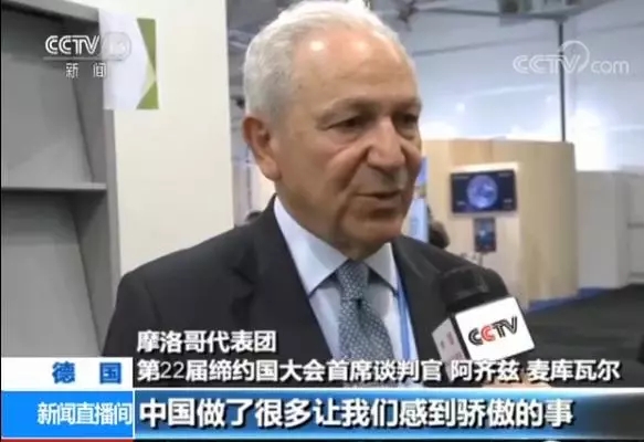 摩洛哥代表團(tuán)第22屆締約國(guó)大會(huì)首席談判官 阿齊茲·麥庫(kù)瓦爾:我認(rèn)為中國(guó)展現(xiàn)出了偉大的領(lǐng)導(dǎo)力,中國(guó)做了很多讓我們感到驕傲的事。中國(guó)在很多領(lǐng)域,以及許多需要解決的問(wèn)題上,都是一個(gè)好榜樣。我可以想到的有交通出行的電氣化,降低二氧化碳?xì)怏w排放,還有近期中國(guó)政府所采取的所有決定。