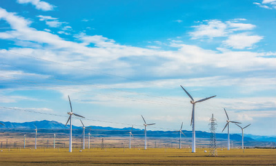 圖為位于新疆烏魯木齊市達坂城區(qū)的風力發(fā)電設施