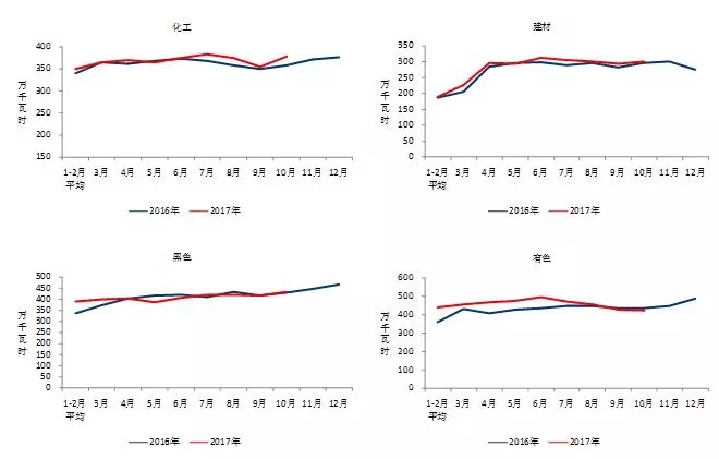 圖4 2016、2017年重點(diǎn)行業(yè)分月用電量情況