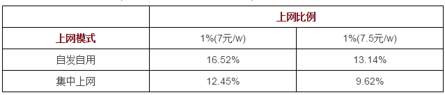 通過(guò)上表可知,在該容量下,只要自發(fā)自用比例超過(guò)18.5%,其資本金內(nèi)部收益率高于集中上網(wǎng)。