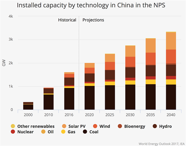 到2040年,預(yù)計中國將增加的發(fā)電量相當(dāng)于整個美國電力系統(tǒng)的發(fā)電量。國際能源機(jī)構(gòu)預(yù)計,根據(jù)目前的政策,中國的煤炭消費(fèi)量在未來幾年將達(dá)到高峰,到2040年將下降15%。中國的電動車投資也將占全球的40%以上。