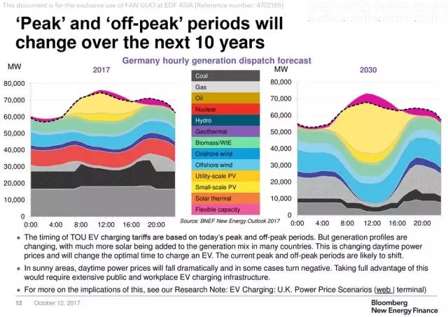 4、隨著光伏發(fā)電成本的下降,尤其小型分布式發(fā)電的滲透,目前的大多數(shù)分時電價的峰時時段將發(fā)生改變。特別是陽光充足的地方,谷時時段會轉(zhuǎn)移到中午,也就意味著需要建設(shè)更多的公共充電設(shè)施或公司專用充電設(shè)備來充分利用該充電時段。