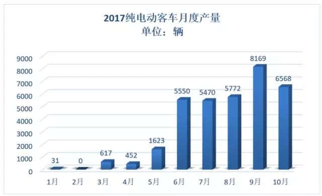 1-10月純電動客車產(chǎn)量34252輛