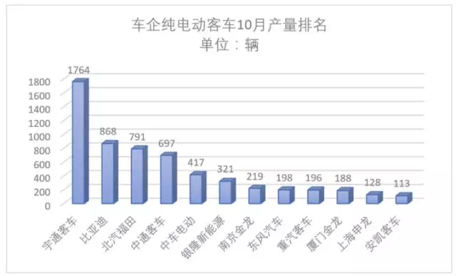 分車企看,用一騎絕塵形容宇通客車絲毫不夸張,今年10月份,宇通以1764輛高居榜首,比亞迪、北汽福田分別以產(chǎn)量868輛和791輛排名第二和第三,宇通單月產(chǎn)量超過第二和第三名產(chǎn)量數(shù)據(jù)的總和。