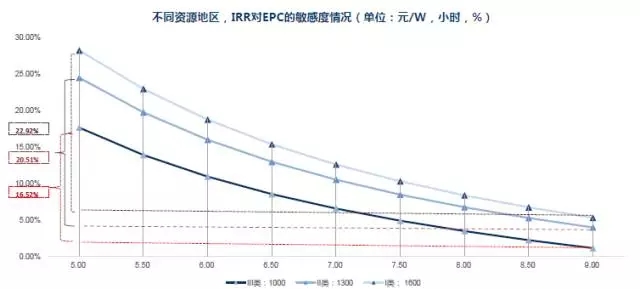 最后綜合來看,資源越好的地區(qū),IRR對(duì)EPC成本的敏感度越高。
