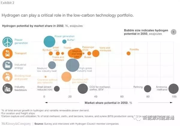 2017年,聯(lián)合國(guó)波恩氣候變化會(huì)議(COP23)舉辦之際,Hydrogen Council(國(guó)際氫能源委員會(huì))的18位企業(yè)領(lǐng)導(dǎo)人也齊聚德國(guó)波恩,在麥肯錫管理咨詢公司的協(xié)助下,發(fā)布了全球首份氫能源未來(lái)發(fā)展趨勢(shì)調(diào)查報(bào)告。該報(bào)告指出,氫能源是能源結(jié)構(gòu)轉(zhuǎn)型的重要方式,并且能夠催生相當(dāng)于2.5萬(wàn)億美元的商業(yè)價(jià)值并同時(shí)創(chuàng)造3000多萬(wàn)人的就業(yè)機(jī)會(huì)。