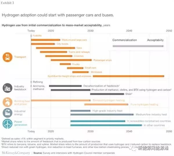 表3:在不同行業(yè)中氫能源的采用將是階段性的