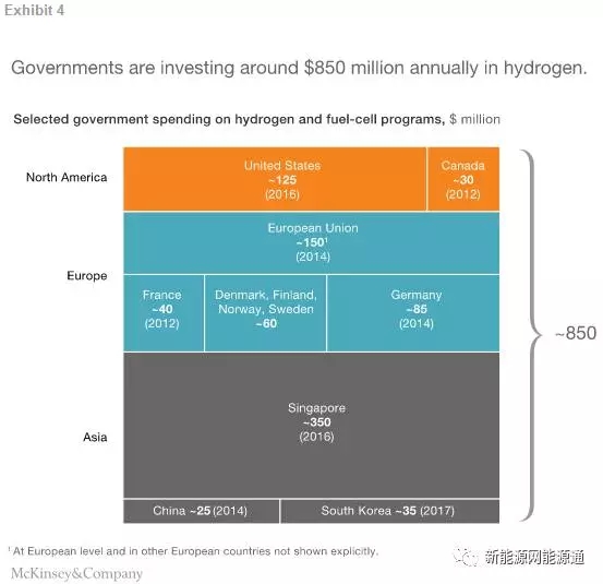 由加州、德國(guó)、日本和韓國(guó)牽頭的許多地區(qū)都正在加快發(fā)展氫能源和燃料電池技術(shù),每年花費(fèi)超過(guò)8.5億美元。其它國(guó)家也在擴(kuò)大自己的生產(chǎn)能力和拓展充電基礎(chǔ)設(shè)施網(wǎng)絡(luò)。