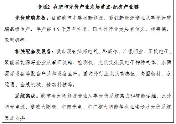 ——“一帶”,即配套服務(wù)和應(yīng)用產(chǎn)業(yè)帶。依托中南光電、大恒能源、流明新能源、廣銀鋁業(yè)、正帆電子、聚能新能源、晶晨光伏等一批中小配套企業(yè)和金太陽、中廣核、國家電投等一批重點(diǎn)應(yīng)用企業(yè),在支架型材、鋁邊框、系統(tǒng)集成等方面,打造北自“下塘集工業(yè)園”,南至巢湖市、廬江縣的完整配套服務(wù)和應(yīng)用產(chǎn)業(yè)帶。