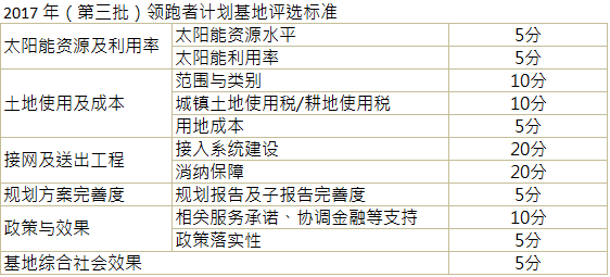 領跑者計劃基地不分應用與技術領跑者,競標的評分標準如下: