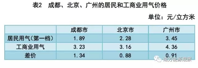 再來看看天然氣行業(yè)的情況。以三個主要天然氣消費城市成都、北京、廣州為例,居民用氣價格選取階梯氣價中的最低一檔,可以發(fā)現(xiàn),成都的居民用氣價格比工商業(yè)用氣價格低1.34元/立方米,相當于低41%;北京的居民用氣價格比工商業(yè)低0.88元/立方米,相當于低28%;廣州的居民用氣價格比工商業(yè)低0.91元/立方米,相當于低21%。