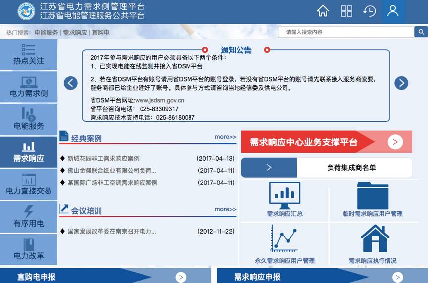 2014年以來(lái),除唐山市外,北京、上海、佛山三市和江蘇省已成功實(shí)施了幾次需求側(cè)響應(yīng)項(xiàng)目,基本是每年夏季實(shí)施一兩次。其中江蘇省需求側(cè)響應(yīng)從實(shí)施范圍、響應(yīng)容量來(lái)看均處于國(guó)內(nèi)領(lǐng)先水平。2017年7月江蘇省經(jīng)信委組織省電力公司對(duì)張家港保稅區(qū)、冶金園啟動(dòng)了實(shí)時(shí)自動(dòng)需求響應(yīng),在不影響企業(yè)正常生產(chǎn)的前提下,僅用1秒鐘時(shí)間即降低了園區(qū)內(nèi)55.8萬(wàn)千瓦的電力需求,創(chuàng)下了國(guó)際先例。