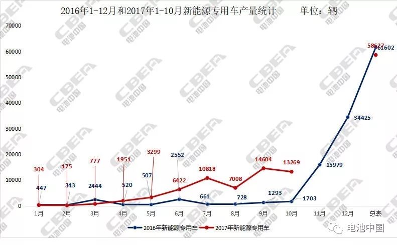 中國化學與物理電源行業(yè)協(xié)會動力電池應用分會研究部在《2017年中國新能源汽車動力電池發(fā)展現狀及未來趨勢展望》報告中,對2016年新能源客車和新能源專用車產量數據做了細致分析,2016年年底,新能源汽車補貼政策的調整對新能源客車和專用車的市場影響較大。見下圖: