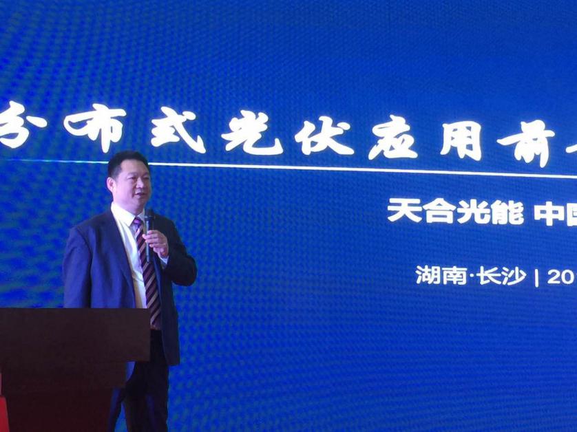 天合光能(北京)系統(tǒng)集成有限公司總經(jīng)理楊軍、天合光能(北京)系統(tǒng)集成有限公司湖南公司總經(jīng)理吳玉玲受邀出席。楊軍作為天合光能商用團隊的負責(zé)人發(fā)表演講,從光伏電站的產(chǎn)品、安裝、運維、收益、環(huán)保效應(yīng)等方面,說明專業(yè)的工業(yè)級電站對于光伏扶貧的重要意義,分享了天合商用在光伏扶貧領(lǐng)域的探索和經(jīng)驗。