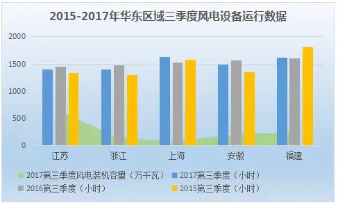 中電傳媒電力傳媒數(shù)據(jù)研發(fā)中心分析顯示,華東區(qū)域位于電力負(fù)荷中心區(qū),電網(wǎng)支撐條件較好,具有較強(qiáng)的消納能力,但與2015年三季度、2016年三季度相比,風(fēng)電設(shè)備利用小時數(shù)有所下滑,風(fēng)電消納壓力依然存在。值得關(guān)注的是,華東區(qū)域海上風(fēng)電項(xiàng)目的積極推進(jìn),預(yù)計風(fēng)電裝機(jī)容量還將會有所提高。