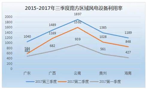 從風(fēng)電設(shè)備利用率上看,南方區(qū)域三季度風(fēng)電設(shè)備利用率穩(wěn)中有增。云南、廣西風(fēng)電設(shè)備利用率高于全國平均水平,分別為1897小時、1489小時。貴州、廣東、海南風(fēng)電設(shè)備利用小時數(shù)分別為1385小時、1189小時、1040小時。