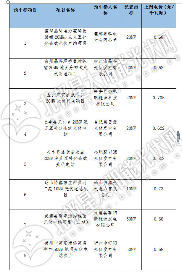 中國儲能網(wǎng)訊:日前,安徽合肥公共資源交易中心公布安徽省2017年集中式光伏電站新增建設(shè)規(guī)模配置項(xiàng)目中標(biāo)(成交)公告中標(biāo)公告。