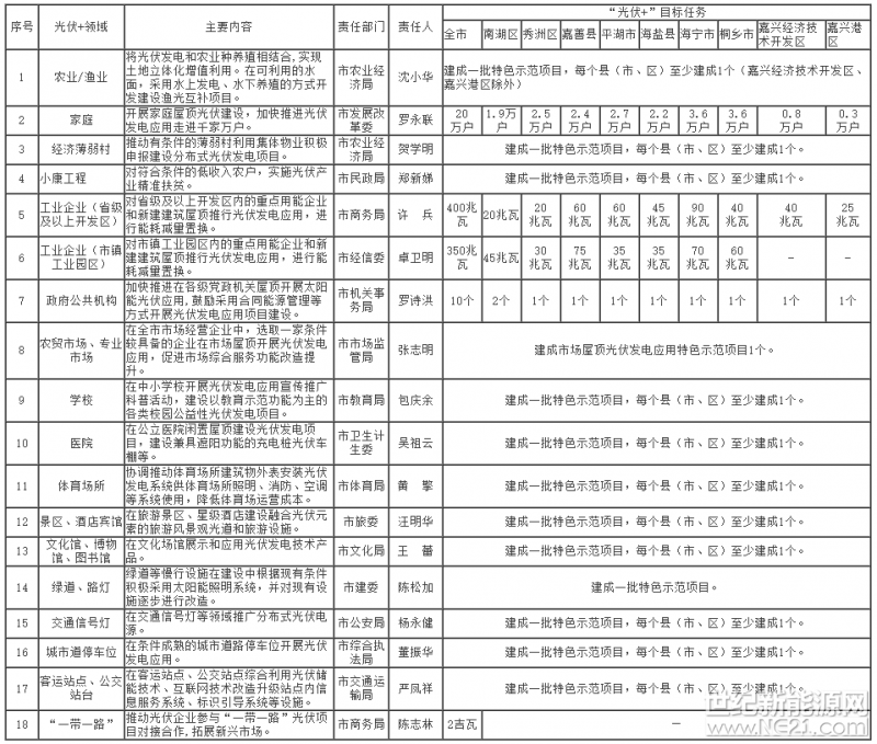 附件:全市推進“光伏+”行動任務分解表(2017~2021年)