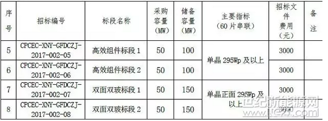 據(jù)悉,11月16日,國家電力投資集團2017年第六十一批700MW組件集中采購(儲備容量為2700MW)開標(biāo),據(jù)悉,共有28家組件企業(yè)參與了此次招標(biāo)。根據(jù)招標(biāo)文件,國家電投此次招標(biāo)共包括12個標(biāo)段,其中單、多晶各4個標(biāo)段,還包括2個高效組件標(biāo)段以及2個雙面雙玻標(biāo)段(見下圖)。