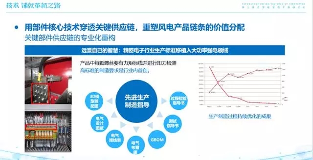 實(shí)際上,2010年遠(yuǎn)景就意識到,僅僅聚焦于系統(tǒng)集成和軟件控制技術(shù)以及外購知名品牌的關(guān)鍵部件,盡管可以始終保持風(fēng)機(jī)產(chǎn)品的質(zhì)量可靠性,但難以滿足持續(xù)推低度電成本的行業(yè)需求,唯有可持續(xù)的風(fēng)電發(fā)展方式才可破局,這也是遠(yuǎn)景為什么執(zhí)意要打開關(guān)鍵部件黑匣子的用意。此后的五年多時間,遠(yuǎn)景先后打開了變頻器、變槳、葉片、發(fā)電機(jī)和齒輪箱等關(guān)鍵部件的黑匣子。這意味著,部件核心技術(shù)穿透了風(fēng)電供應(yīng)鏈,被改變甚至重塑的不只是產(chǎn)業(yè)鏈,風(fēng)電整機(jī)性能和可靠性也會躍上新臺階。