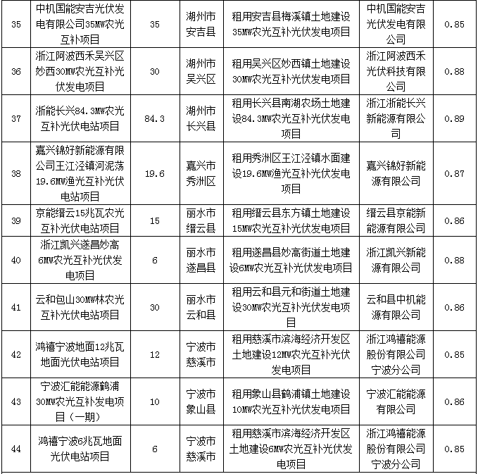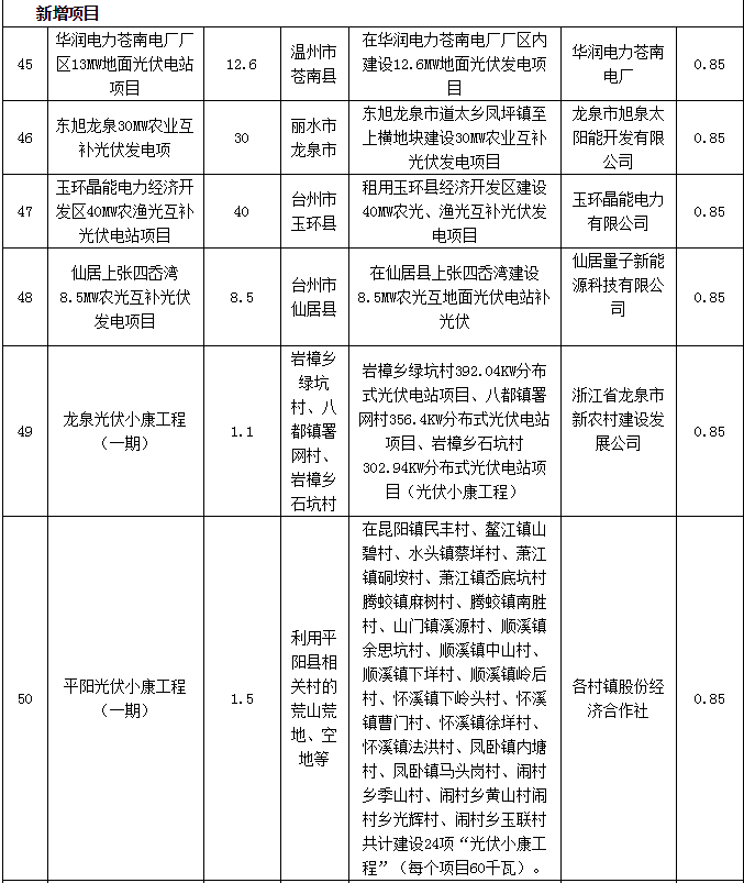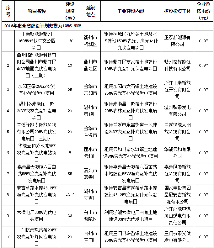 浙江省2016年度普通地面光伏電站建設(shè)調(diào)整計(jì)劃