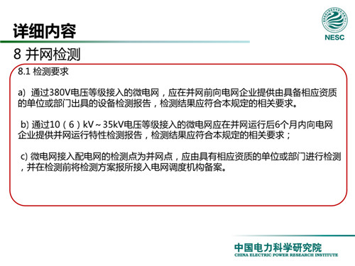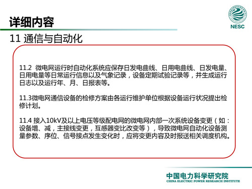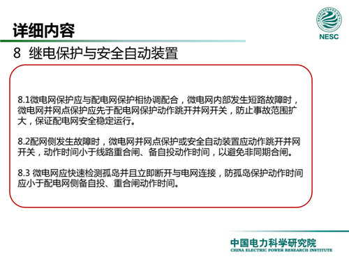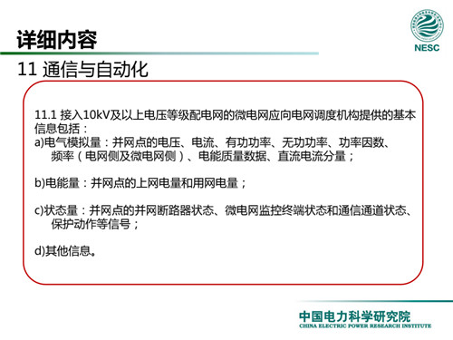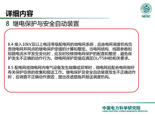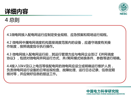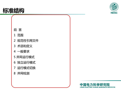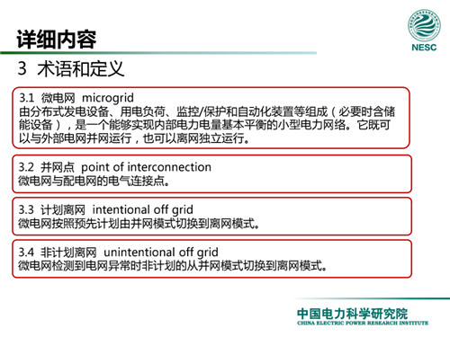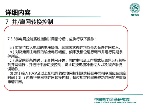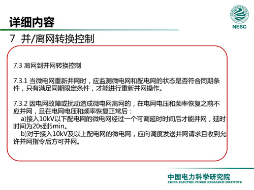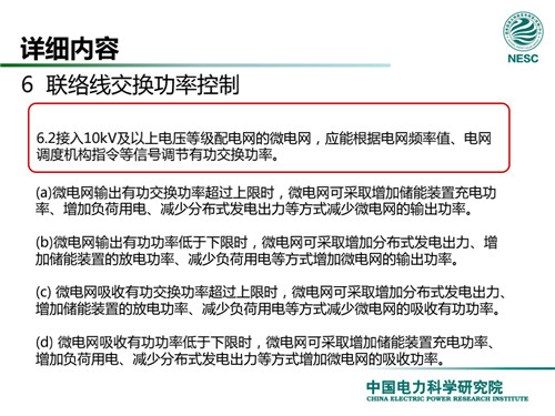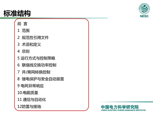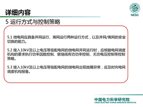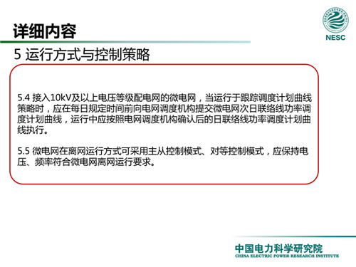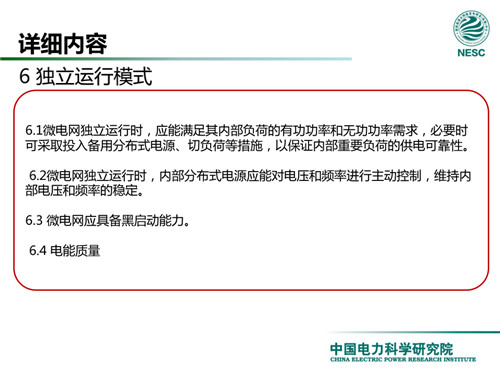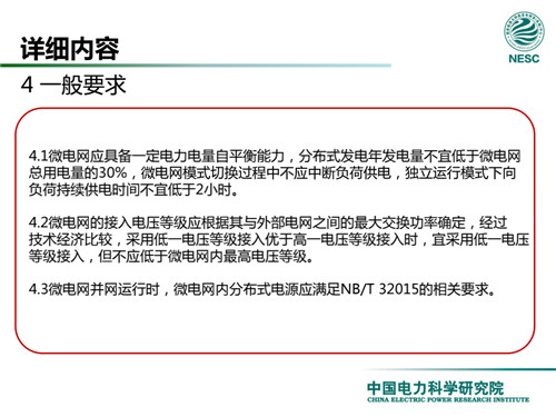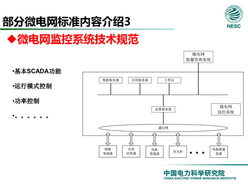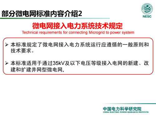 2013年7月18日,國家標(biāo)準(zhǔn)化管理委員會在《國家標(biāo)準(zhǔn)委關(guān)于下達(dá)2013年第一批國家標(biāo)準(zhǔn)制修訂計劃的通知》(國標(biāo)委綜合[2013]56號)中,下達(dá)了國標(biāo)《微電網(wǎng)接入配電網(wǎng)運(yùn)行控制規(guī)范》編制。該標(biāo)準(zhǔn)規(guī)定了微電網(wǎng)接入配電網(wǎng)運(yùn)行控制應(yīng)遵循的規(guī)范和要求。包括微電網(wǎng)的運(yùn)行方式不控制策略、聯(lián)絡(luò)線交換功率控制、并/離網(wǎng)轉(zhuǎn)換控制、繼電保護(hù)不安全自動裝置、電網(wǎng)異常響應(yīng)、電能質(zhì)量、通信與自動化等。適用于接入35kV及以下電壓等級配電網(wǎng)的微電網(wǎng)系統(tǒng)。