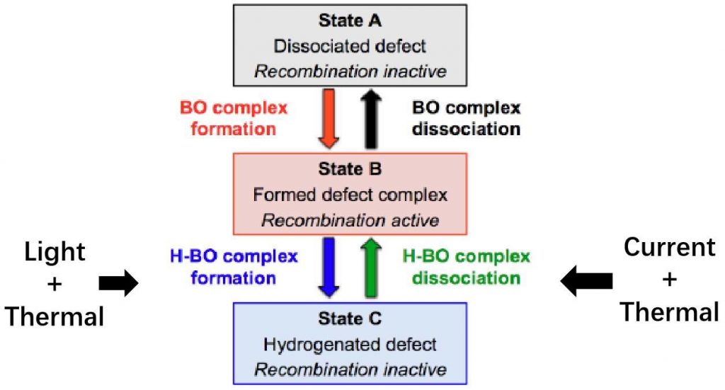 圖一 單晶PERC電池的LID衰減和恢復(fù)機(jī)理