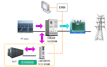 隨著電化學儲能技術的日益成熟,儲能電池的成本在持續(xù)降低,循環(huán)壽命等性能指標也在持續(xù)提升,大量早期投運的大型地面光伏電站中,由于上網(wǎng)電價相對較高,通過升級改造增加儲能系統(tǒng)用于解決棄光問題,并進一步提升電站出力曲線預測和控制精度,已經(jīng)具有一定的商業(yè)價值。但是,在已投運光伏電站增加傳統(tǒng)的交流側接入集中式儲能系統(tǒng),面臨電網(wǎng)接入改造困難,新增設備投資多,儲能集中放置用地大,能量傳輸環(huán)節(jié)多系統(tǒng)效率低等一系列問題,上能電氣在光伏行業(yè)積淀多年,憑借對光伏系統(tǒng)的深入的理解,布局光伏+儲能系統(tǒng)的技術研發(fā),并結合華能清能院直流側儲能管理系統(tǒng),將儲能技術完美融入到光伏發(fā)電系統(tǒng)當中,只需要在任意品牌集中式光伏逆變器直流輸入側接入上能光儲專用DCDC變流器和儲能電池,就可以高效率的實現(xiàn)光伏組件對儲能電池的充電以及儲能電池向光伏逆變器的放電,并且不影響原有光伏發(fā)電系統(tǒng)的正常運行。該光伏儲能系統(tǒng)架構清晰,設備少投資少,同時具備極高的儲能轉換效率,為未來傳統(tǒng)光伏電站增加儲能系統(tǒng)的升級改造鋪平了道路。