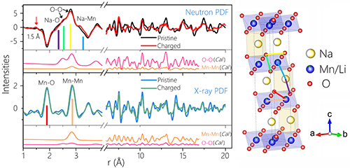 圖2.P3-Na0.6[Li0.2Mn0.8]O2初始態(tài)和充電態(tài)nPDF及xPDF對比分析