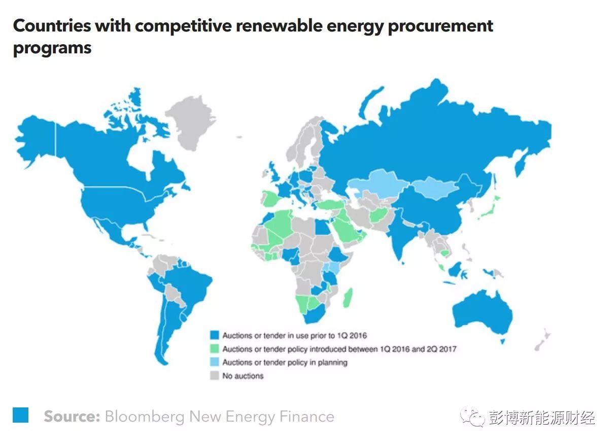 中國(guó)儲(chǔ)能網(wǎng)訊:為了更好地控制補(bǔ)貼成本和可再生能源部署情況,并取得不同程度的成功,世界各國(guó)政府開(kāi)始更多引入競(jìng)爭(zhēng)性拍賣(mài)和“綠證”交易來(lái)取代可再生能源上網(wǎng)電價(jià)補(bǔ)貼機(jī)制。拍賣(mài)機(jī)制導(dǎo)致對(duì)新增容量的控制更加嚴(yán)格,同時(shí)使可再生能源電價(jià)下降。