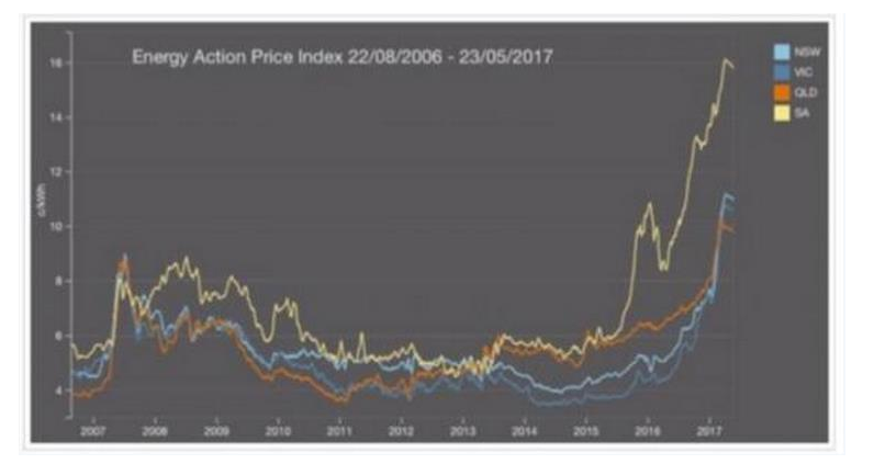 隨著供應(yīng)穩(wěn)定性不斷減弱,電價卻在不斷上升。2017年初部分地區(qū)電價甚至出現(xiàn)接近20%的激增。