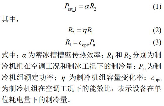 蓄冰槽的設(shè)備容量與制冷機組的耗電功率和雙工況模式下的制冷量有關(guān)。蓄冷功率為