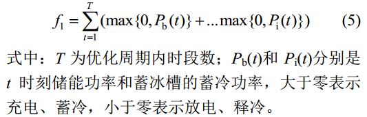 儲能系統(tǒng)充、放電和蓄冰槽蓄、釋冷過程中均有能量的損失,放電深度也會影響設(shè)備使用壽命,為提高能源利用效率,減少由能量轉(zhuǎn)換產(chǎn)生的能耗,第1個優(yōu)化目標(biāo)是使鋰電池循環(huán)電量和蓄冰槽循環(huán)冷量最小。因為一個優(yōu)化周期內(nèi),儲能系統(tǒng)的始末荷電狀態(tài)和蓄冰槽儲冷狀態(tài)保持不變,故用充電量、蓄冷量表征循環(huán)電量和循環(huán)冷量。表示為