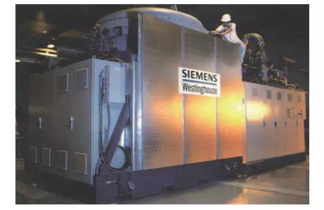 管式 SOFC 是最早被研究也是目前最接近商業(yè)化的發(fā)電技術(shù)。2002 年 5 月,西門(mén)子西屋公司與加州大學(xué)合作,在加州安裝了第 1 套 SOFC 與氣體渦輪機(jī)聯(lián)動(dòng)發(fā)電系統(tǒng)(圖 10)[16],能量轉(zhuǎn)化效率高達(dá) 58%。除了西屋公司外,日本三菱重工長(zhǎng)崎造船所、九州電力公司和東陶公司、德國(guó)海德堡中央研究所等也進(jìn)行了 kW 級(jí)管狀結(jié)構(gòu) SOFC 發(fā)電試驗(yàn)。