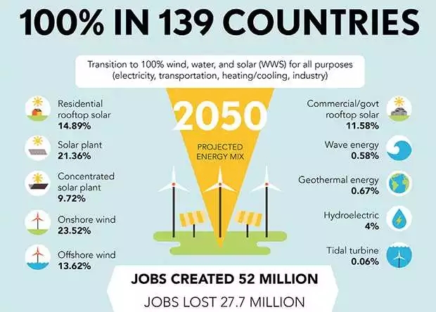 在此之前,斯坦福大學(xué)曾發(fā)布一份研究報(bào)告稱(chēng),到2050年,全球139個(gè)國(guó)家將通過(guò)太陽(yáng)能、風(fēng)能、水電、地?zé)崮艿葘?shí)現(xiàn)100%可再生能源供電。