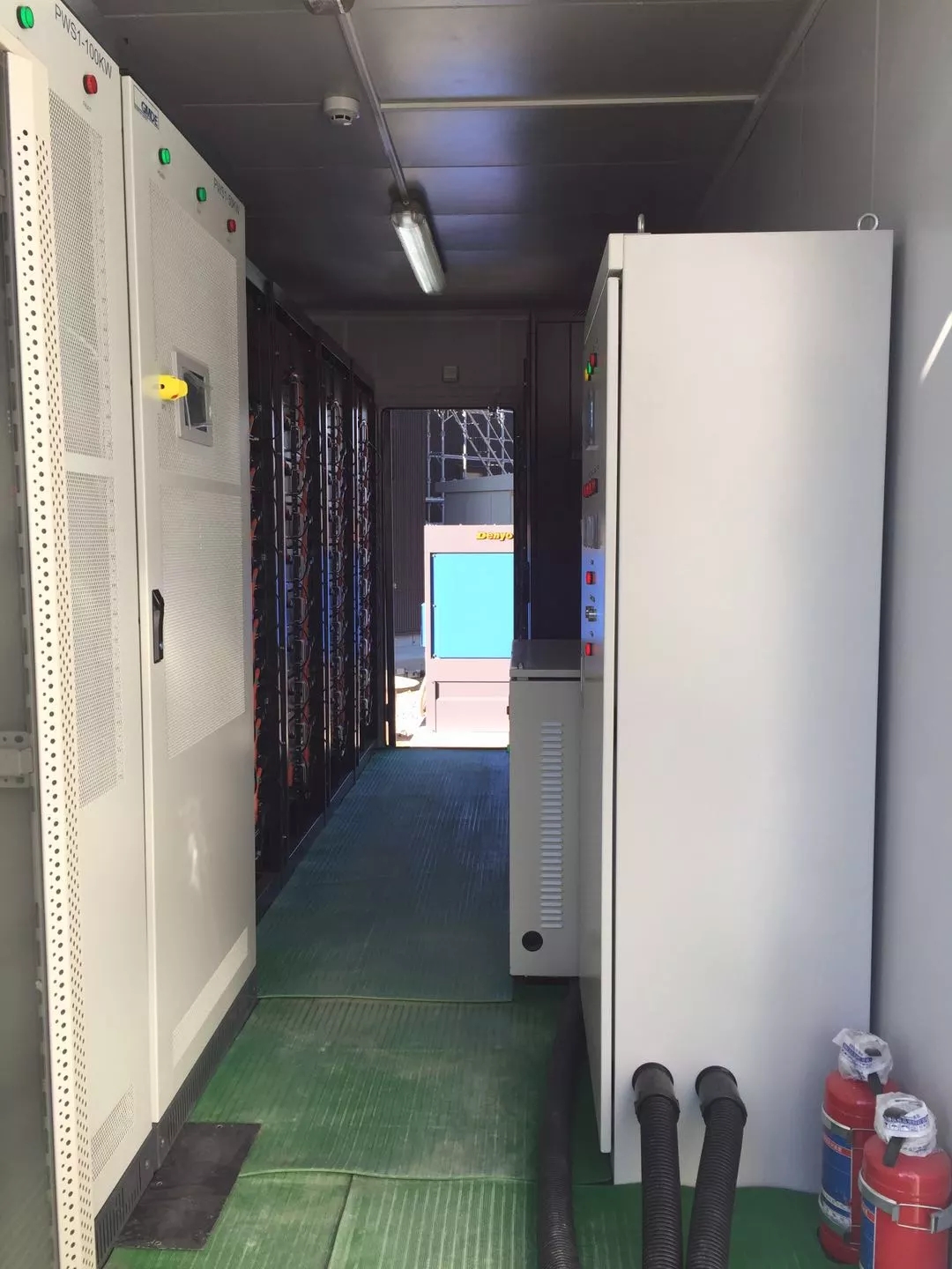 日本智能微網(wǎng)項目技術(shù)要求頗高,最終要實現(xiàn)在盡可能最大化利用太陽能的基礎(chǔ)上,不依靠電網(wǎng),實現(xiàn)柴油機和儲能系統(tǒng)分別作為主電源之間的無縫切換,以保證客戶負荷24小時不間斷供電。煦達團隊針對此要求及時協(xié)調(diào)多方供應(yīng)商資源,最終制訂了周密完善的技術(shù)實施方案:系統(tǒng)由150kW光伏發(fā)電系統(tǒng)、100kVA柴油機發(fā)電系統(tǒng)、150kW/516kWh蓄電池儲能系統(tǒng)、20尺標(biāo)準集裝箱以及微網(wǎng)控制系統(tǒng)(EMS)組成。通過EMS對各系統(tǒng)的調(diào)控,實現(xiàn)光伏發(fā)電、電池儲能充放電、柴油發(fā)電機聯(lián)合給負載供電的功能。系統(tǒng)可在無人值守的情況下自動執(zhí)行多電源的無縫切換和協(xié)調(diào)控制,保證負載的供電穩(wěn)定,實現(xiàn)對光伏發(fā)電最大化消納和保障供電可靠性。