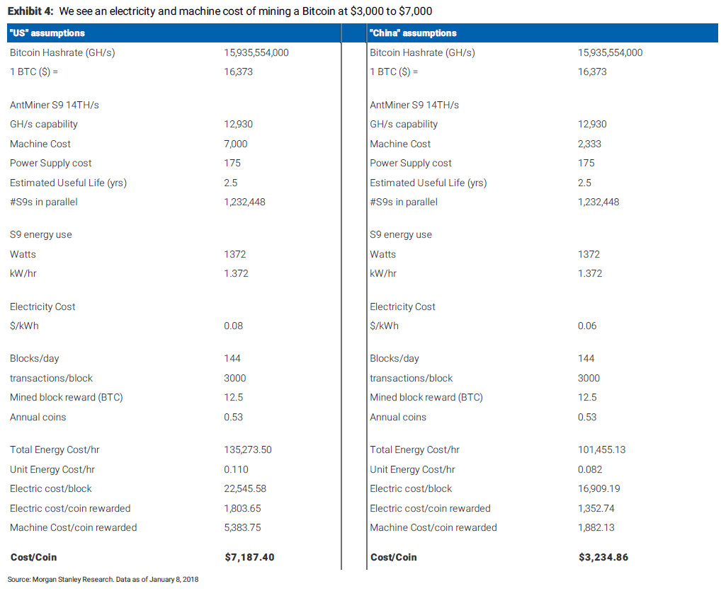 產(chǎn)生一枚比特幣的成本到底是多少?大摩模型:3000到7000美元不等,看在哪里“挖”了!