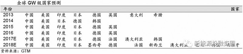 歐洲新興國家需求增加,荷蘭西班牙將成為GW 級國家:為實現(xiàn)2020 年實現(xiàn)能源使用的20%來自可再生能源目標(biāo),各國積極制定計劃。