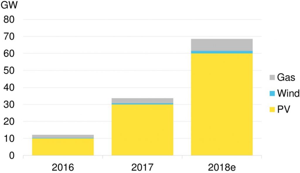 BNEF認(rèn)為,隨著新政策的實(shí)施,2018年,屋頂太陽能裝置將激增70%達(dá)到24吉瓦。