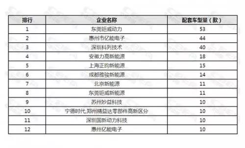 圖4: “BMS+PACK”模式類占車型量排行前10家企業(yè)
