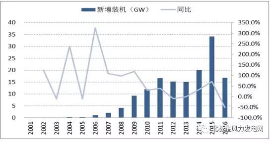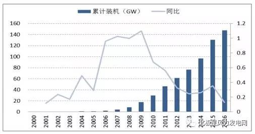 2018 年風(fēng)電行業(yè)將復(fù)蘇。我國截至 2016 年風(fēng)電累計并網(wǎng)裝機為 1.5 億千瓦,這意味著,要想實現(xiàn)國家規(guī)劃的目標(biāo),2017-2020年,4年內(nèi)要至少增60GW,年均增長至少15GW。而根據(jù)國家《2017~2020 年風(fēng)電新增建設(shè)規(guī)模方案》,風(fēng)電年均新增規(guī) 模在25GW 以上。
