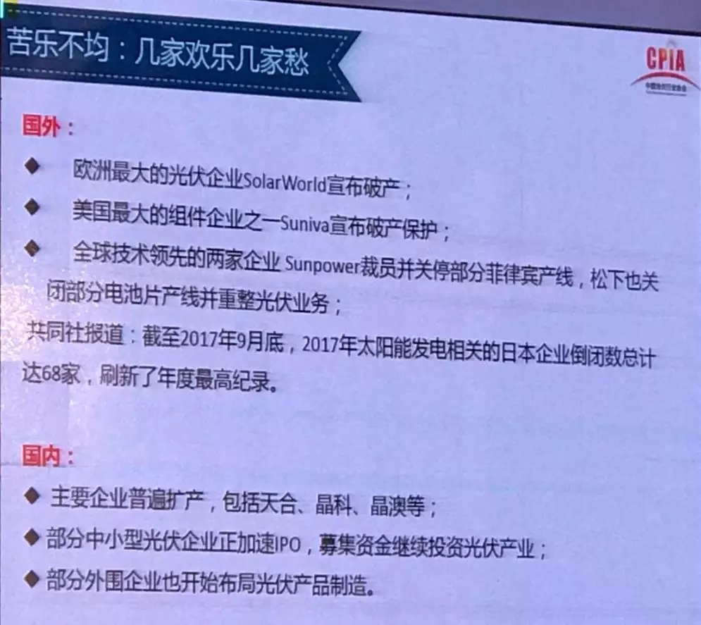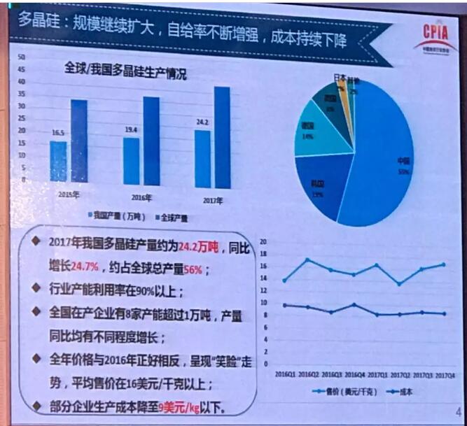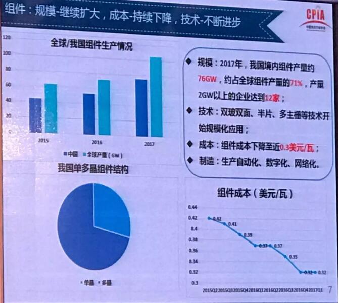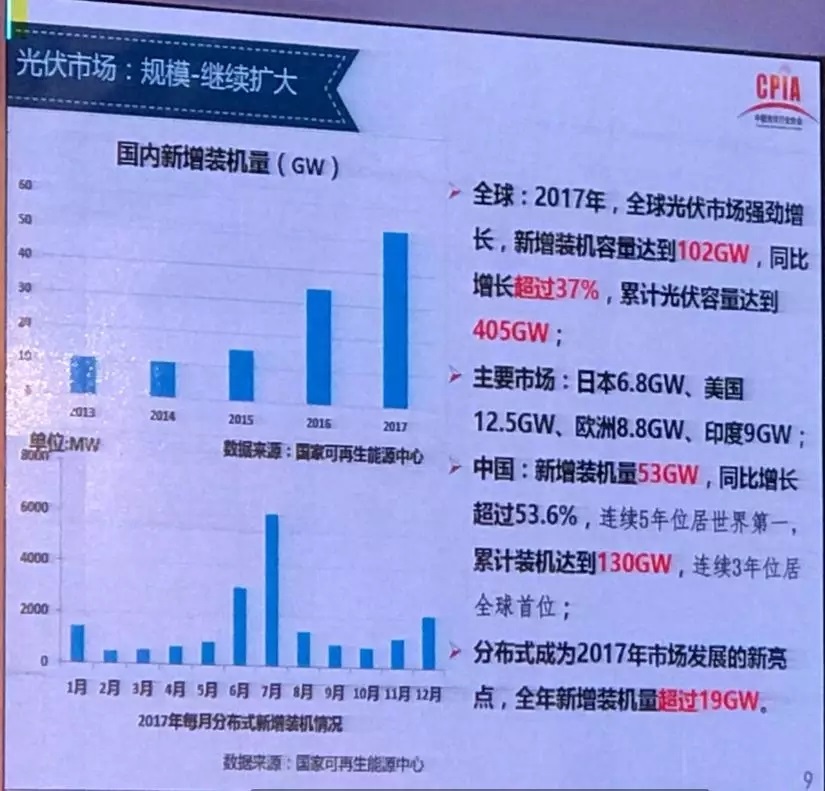 中國儲能網(wǎng)訊:1月24日,光伏行業(yè)2017年發(fā)展回顧與2018年展望研討會在京如期舉行。會上,中國光伏行業(yè)協(xié)會副理事長兼秘書長王勃華作了《我國光伏產(chǎn)業(yè)發(fā)展情況——2017年回顧與2018年展望》的報告。匯報如下: